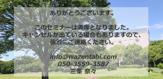 出来るだけ多くの人に聞いていただければと思うのですが、ワークをしながら、出来るだけ近い距離で成瀬まゆみ先生との時間を持っていただきたく、今回は人数限定としております。